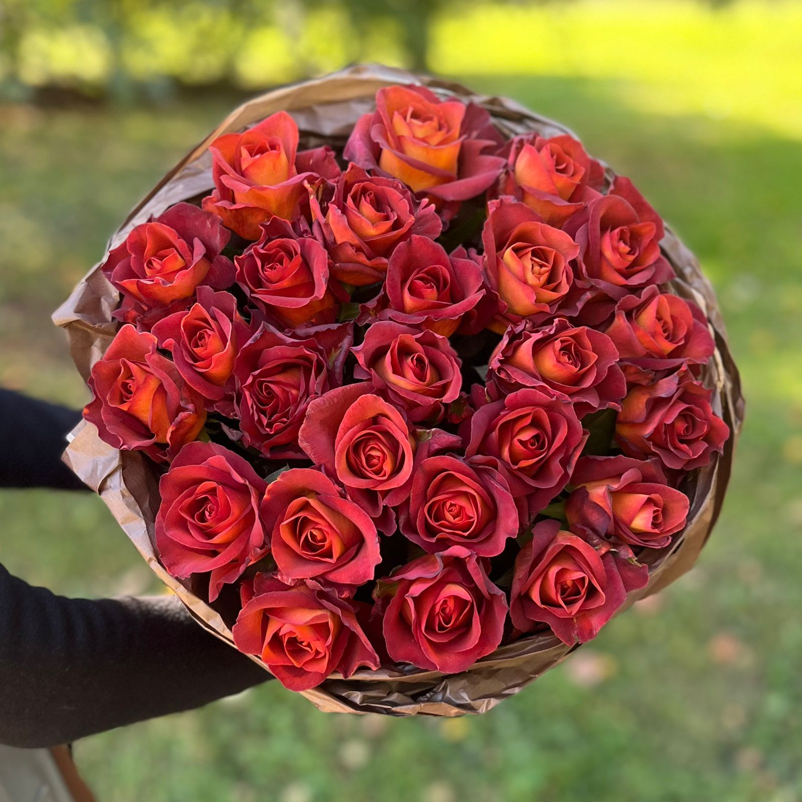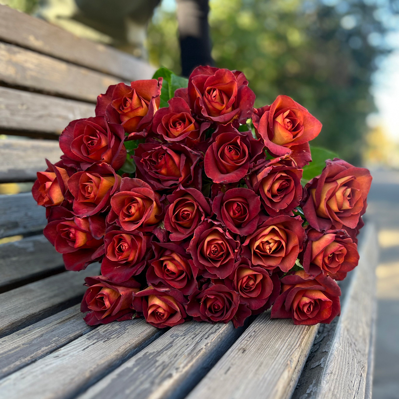 Цвета гречишного мёда роза с лиловым переливом по краю лепестка. Горячий шоколад и языки пламени. Бестии рыжий, охра вне времени и терракота античности.
