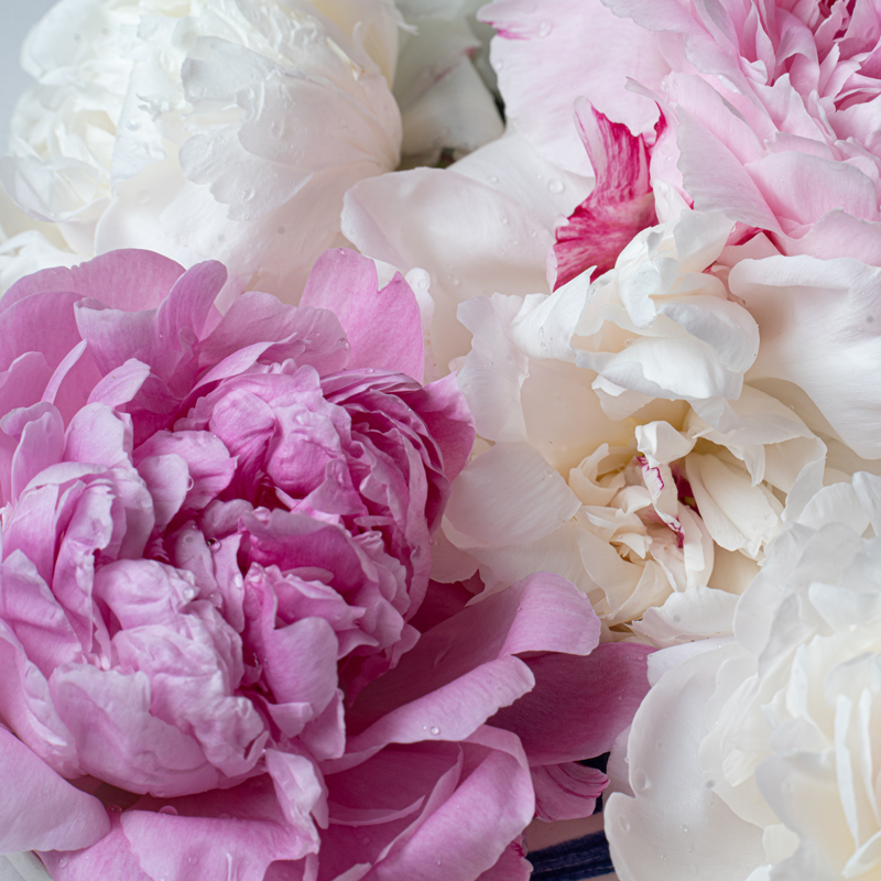 Состав букета будет зависеть от срезки пионов. В букете будут ароматные сорта пионов, среди которых: Александр Флеминг, Фестива Максима, Сара Бернар, Месье Жюль Эли, Дюшес де Немур.
