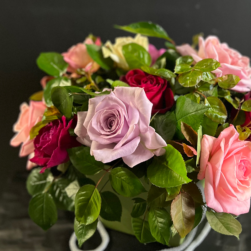 ❃ садовые ароматные розы❃ композиция будет упакована в коробку, чтобы удобно нести и дарить❃ кашпо-основа: 118×154×125 мм; цвета юной травы