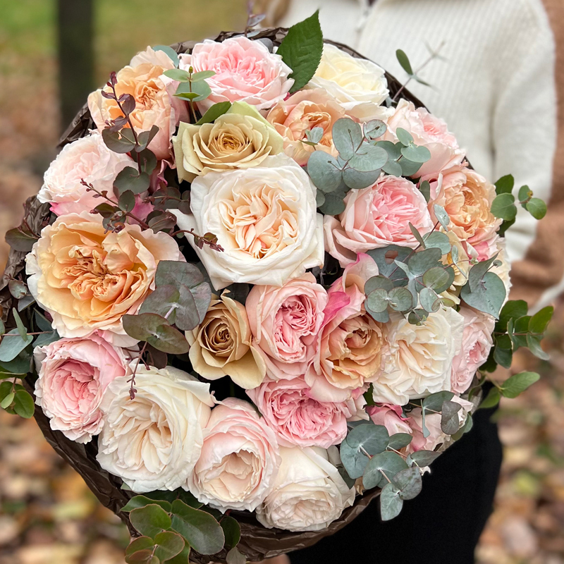 🌸 Миндальный микс — букет интерьерных и ароматных садовых роз — 8 марта у Феи