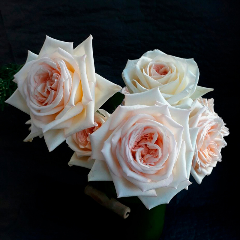 Самая настоящая садовая роза, распускается в четыре сердца, заостряя лепестки, как звёзды. В светло-персиковых тонах и аромате лаванды.