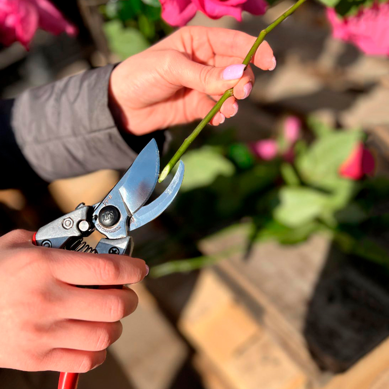 ❤️ Таким секатором была срезана первая роза в нашей теплице в 2008 году. Сегодня у каждого из нас в руке — такой же! Каждой задаче — своя модель: для срезки; для подрезки в процессе сортировки и упаковки на производстве; для работы в мастерской. Самый красный из красных — у главной Феи; самый острый — у главного бухгалтера в сейфе. Для вас же мы подобрали самые изящные из надёжных, чтобы в радость было подрезать каждую розу, перед тем как поставить её в вазу.