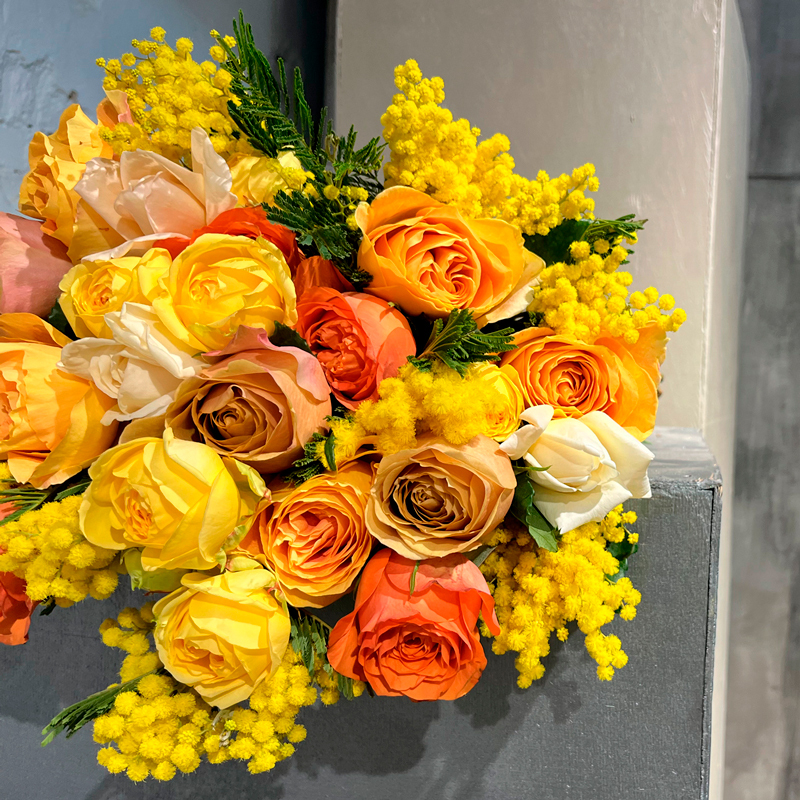 Сорта роз в составе букета могут варьироваться, цветовая палитра будет сохранена.